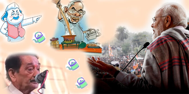 चायवाला एक नारा आया हर हर वो वो घर घर वो वो ऐसा सुन कर नारा, परेशान हो गया एक नेता बेचारा बोला यह चाय वाला ? यह प्रधान मंत्री बनेगा ? यह रास्ते का पत्थर, हिमालय बन कर तनेगा ? हमने कहा, नहीं हुजूर ! यह तो अपमान उठाने को हुआ है पैदा और तुम ले चुके सम्मान की ठेकेदारी अनगिनित दाग खा कर भी सफेद हो अब तक आड़ मैं तुमने सदा अछूती बाजी मारी !तुमने निर्माण दुल्हनियाँ के गहने बेच दिए माँ का शृंगार नोच, खुद का तन सजाया है तुम ने हर बच्चे से माता का दूध छीना है तुमने हर भूखे का निवाला छीन खाया है ! नैनसुख जी! नैनसुख जी! नैनसुख जी!! तुम्हें किस नाम से पुकारें हम, आप तो स्वर्ग से उतरे, खुदा के बंदे हैं पर इन आँख वालों का कुछ बयान है यूं कि यहाँ मशालची सब अंधे हैं ! हुजूर आपने ठीक फरमाया माई बाप, आपने ठीक फरमाया हुजूर, आपने ठीक फरमाया यह चाय वाला है जी हाँ हुजूर, यह चाय वाला है बचपन से इसको अभावों ने पाला है इसके पास आत्मविश्वास की पूंजी है, आत्मा में बल है पुरुषार्थ धनुष लिए अर्जुन सा अटल है यह राजनीति दलदल का खिलता हुआ कमल है इसके पास एकात्म मानवतावाद का बल है मुश्किल से आपके मुह पहुंचाने वाला है जी हाँ हुजूर, यह चाय वाला हैहुजूर ये चाय बेचता है, सम्मान नहीं बेचता स्वाभिमानी है यह, स्वाभिमान नहीं बेचता स्वार्थ के लिए, यह खानदान नहीं बेचता और हुजूर आप की तरह, यह हिंदुस्तान नहीं बेचता! तूफान से लड़ता, आग में मुस्काता है जनमत का संबल ले बढ़ता ही जाता है दिन दुखी पीड़ित इंसानों से जुड़ गया और भरत माता के लिए माँ से बिछुड़ गया! आने वाले कल के लिए दीन दुखी दुर्बल के लिए वो बन गया उजाला है जी हाँ हुजूर ये चायवाला है!! सत्य नारायण सत्तन