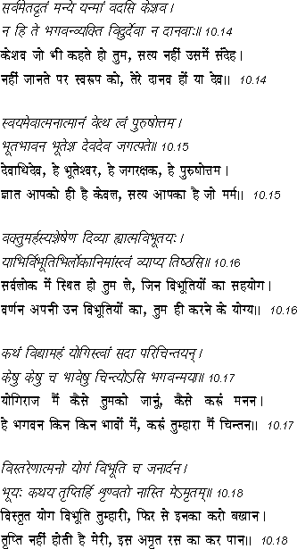 Translation of some Sanskrit shlokas from 10th chapter (Vibhuti yoga) of Gita into metered Hindi verses.