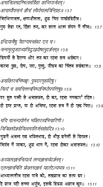 Translation of some Sanskrit shlokas from 13th chapter (Kshtra Kshetraja vibhag yoga) of Gita into metered Hindi verses.