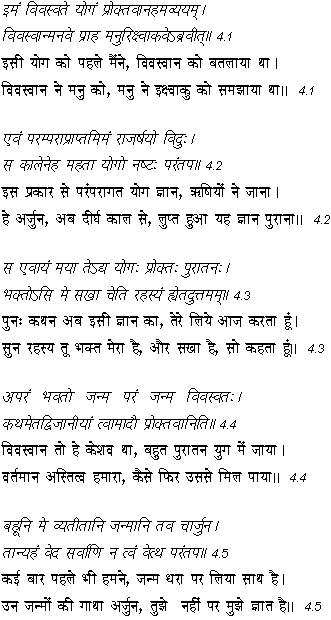 Translation of some Sanskrit shlokas from 4th chapter (Gyan yoga) of Gita into metered Hindi verses.