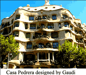 ऐंटोनी गौडी बारसीलोना का एक विश्व प्रसिद्ध आर्कीटैक्ट था जिसका निधन 1926 में हो गया। पर गौडी के डिज़ाइन्ड घर जो कि लगभग सौ साल पुराने थे शहर में जगह जगह पर थे और पर्यटकों के प्रमुख आकर्षण के केंद्र थे। हमने एक घर “कासा पैडरेरा” विस्तार से देखा और गौडी के सौ साल पहले डिज़ाइन देखकर दंग रह गये ह्यचित्र देखेंहृ। पूरे यूरोप में सौ दो सौ वर्ष पहले वास्तुकला के क्षेत्र में एक विलक्षण सृजनात्मक उबाल आया जिसके फलस्वरूप अशचर्यजनक इमारतों का निर्माण हुआ। ऐंटोनी गौडी का इसमें महत्वपूर्ण योगदान था। “कासा पैडरेरा” आठ मंजिला एपार्टमैंट कौमप्लैक्स है जिसकी छत पर विभिन्न प्रकार की एब्सट्रेक्ट मूर्तियां हैं।कुछा मूर्तियों की बाहरी सतह टूटेफूटे सीरेमिक टाइलों से जड़ी हुईं थीं जो कि चंडीगढ़ मे नेकचंद गार्डन मे लगी मूर्तियों के समान थीं। परछत्ती में पत्थर की टाइलों के मेहराब है जो कि अत्यंत सुंदर और सुदृढ़ हैं। एक एपार्टमैंट भी दर्शकों के लिये खुला है जिसमें सौ वर्ष पहले रहन सहन दर्शाया गया है। उस समय के अमीरों का ठाठबाट देखते ही बनता था।